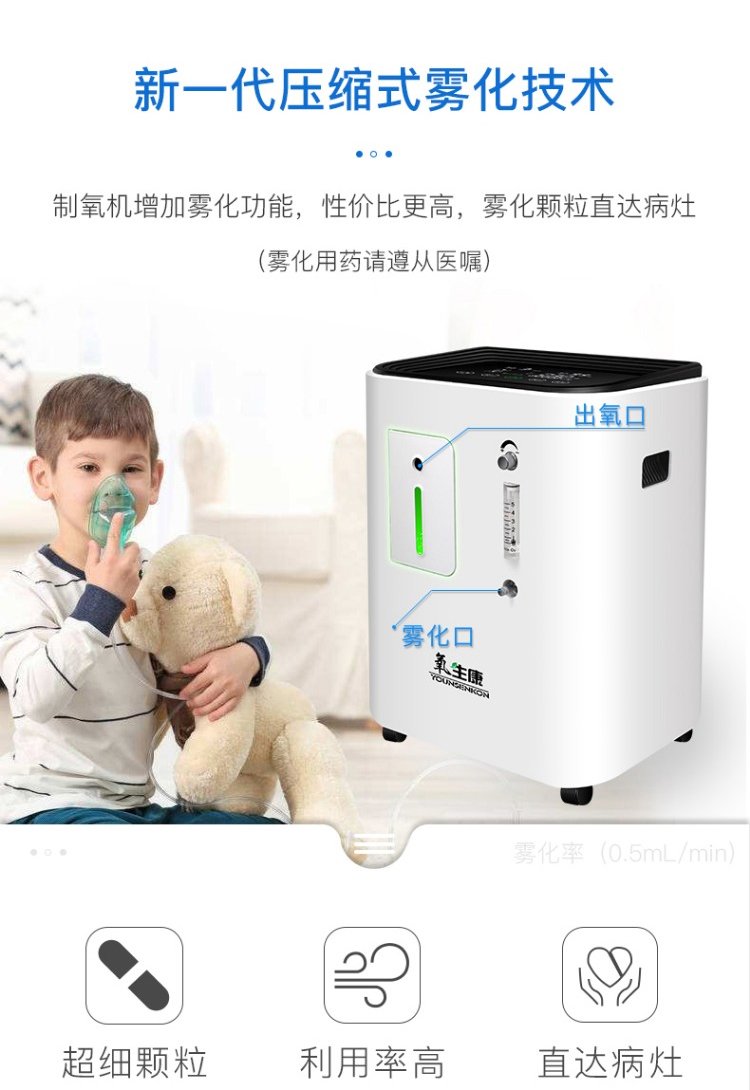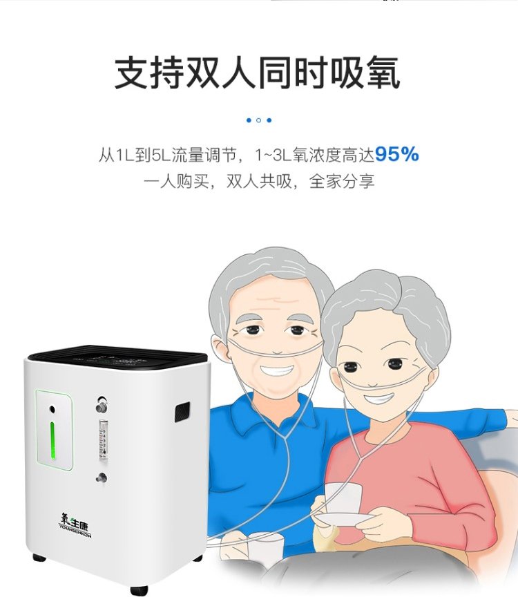 氧生康 家庭智能雙人吸氧機 靜音負離子高濃度制氧機 霧化款3-5L